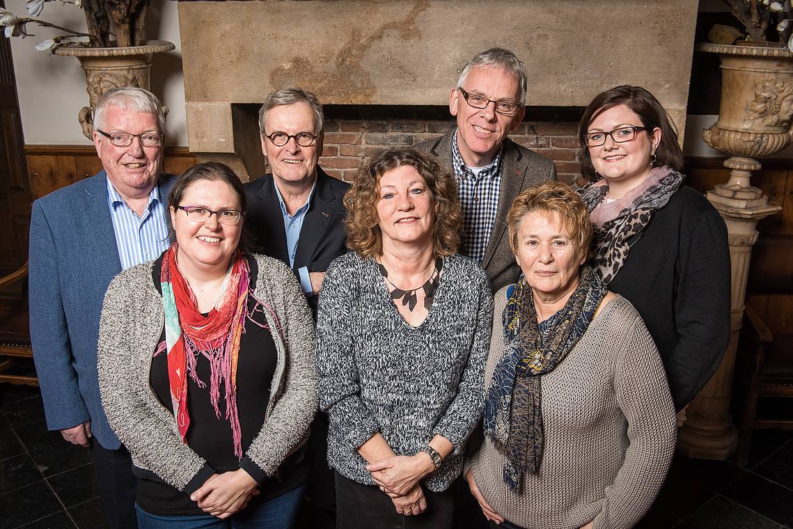 (op de foto v.l.n.r boven: Gerard Wesseling (secretaris), Henk Grootveld (voorzitter), René Nuijten, Sylvia Janssen en v.l.n.r. beneden: Godelieve Brinkhof, Thea van Vlijmen, Katja Jamin): "De