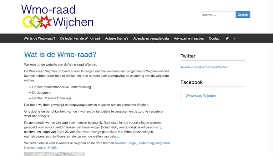 Wmo-raad Wijchen probeert ervoor te zorgen dat alle inwoners van de gemeente Wijchen invloed kunnen hebben door mee te denken en mee te doen over vormgeving en uitvoering van de volgende wetten: