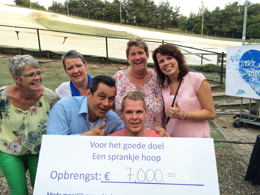 Verder waren er optredens van diverse zangers en draaide het Rad van fortuin met grandioze prijzen, zoals een flatscreen-tv, huishoudelijke apparatuur, beauty-pakketten en nog veel meer. Dit alles werd mede mogelijk gemaakt door lokale ondernemers. Kortom: een topmiddag was geregeld voor de 29-jarige Bergharenaar op de Wijchense Skiberg waar zijn ziekte zich 10 jaar geleden openbaarde en waar nu deze superactie positief werd afgerond. Er werd nog eens 7.000 euro opgehaald waardoor het streefbedrag van 60.000 euro behaald werd!