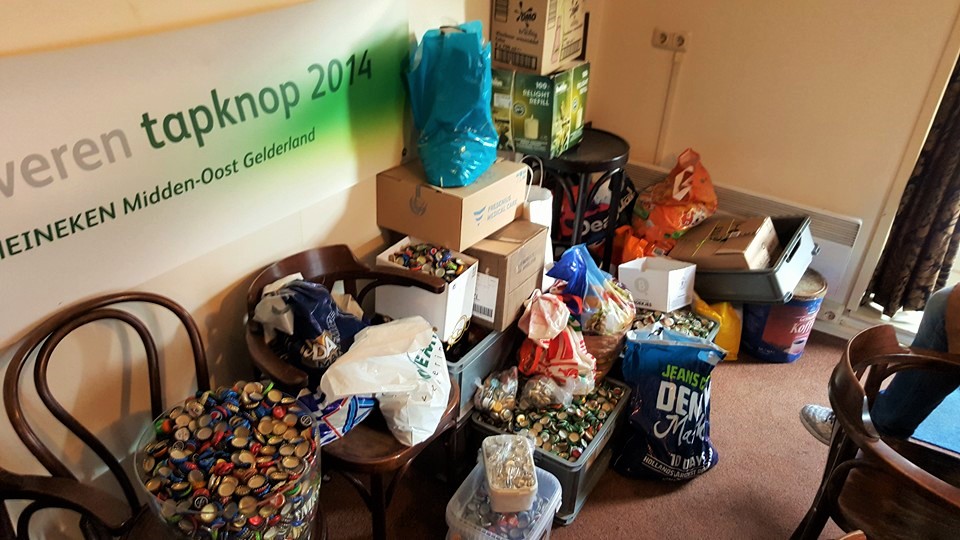 “Toen Arjan naar mij toe kwam met dit initiatief was ik gelijk enthousiast, maar we hadden beiden niet gedacht dat er zoveel mensen langs zouden komen om dopjes bij ons af te geven” aldus Martijn. “Van plastic zakjes, grote boodschappen, kratten en zelfs vuilniszakken, alles hebben we voorbij zien komen.” Op de zolder van Café Anneke ligt inmiddels een flinke berg.