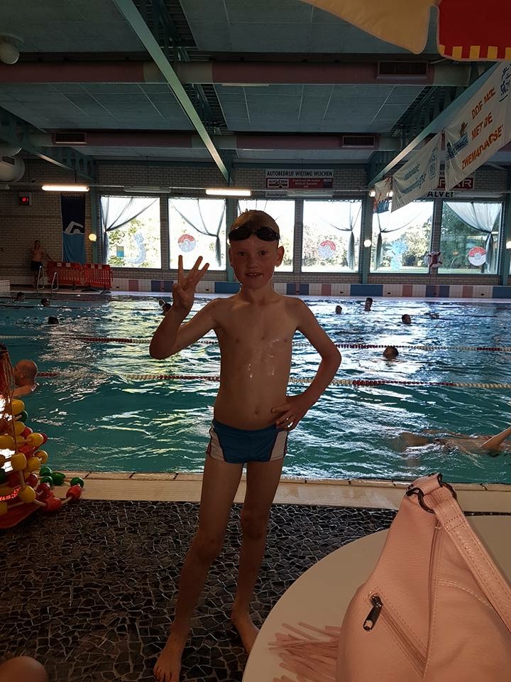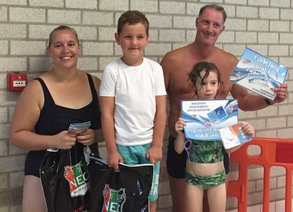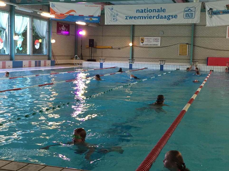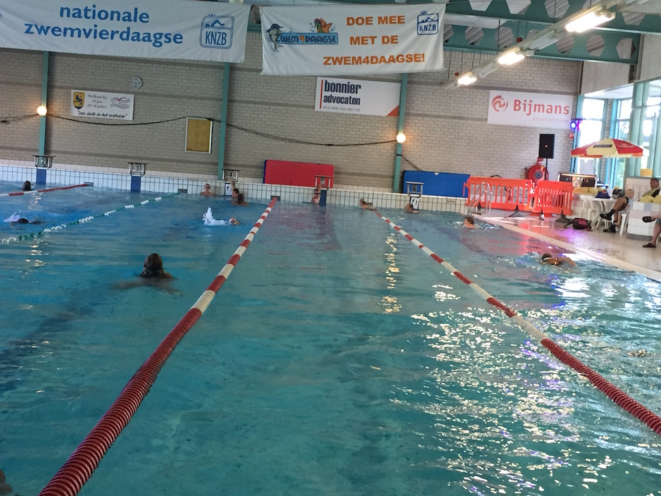 De 176 deelnemers van de Wijchense Zwem4daagse bij zwembad de Meerval zwommen van 22 t/m 26 augustus een afstand van 300m, 600m, 900m of 1200m per dag. Daarvoor kregen ze een medaille en een gratis kinderbioscoopkaartje. Tevens maakten ze kans op een 1/2 en op 1 jaar gratis zwemmen plus een N.E.C.-promo-pakket. Supergezellig ook bij het discozwemmen; wat een topevenement van de Meerval!