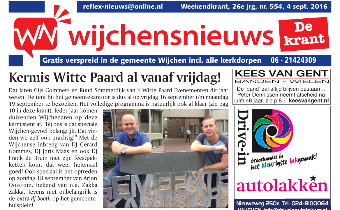 De gratis huis-aan-huiskrant 'Wijchensnieuws - de krant' zal vanaf vandaag weer in uw brievenbus verschijnen. En natuurlijk staat deze krant vol nieuwtjes ook op onze website: