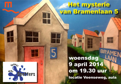 Op dinsdag 8 en woensdag 9 april speelt toneelgroep ‘Spetters’ van het Maaswaal College ‘Het mysterie van Bramenlaan 5’.