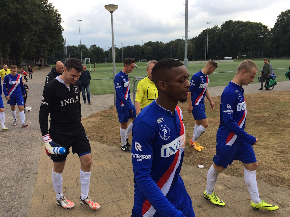 En in de 1e minuut is door een foutieve terugspeelbal direct 0-1 voor Goes. Wat een domper! De jonge ploeg uit Goes blijft ook het betere van het spel hebben en creërt goede kansen. Sporadisch komt AWC eruit, voornamelijk als Pauw erbij betrokken is. In de 28e minuut komt Stevens alleen voor de keeper, maar die stopt zijn inzet. Ook Goes heeft gevaarlijke kansen; zo ook in de 31e minuut maar de inzet gaat rakelings langs. In de 38e minuut is het wel raak: 0-2 Goes en niet onverdiend. Wat een kans in de 41e minuut: Nijenhuis verschijnt door Pauw alleen voor de keeper; hij schiet echter hoog over.