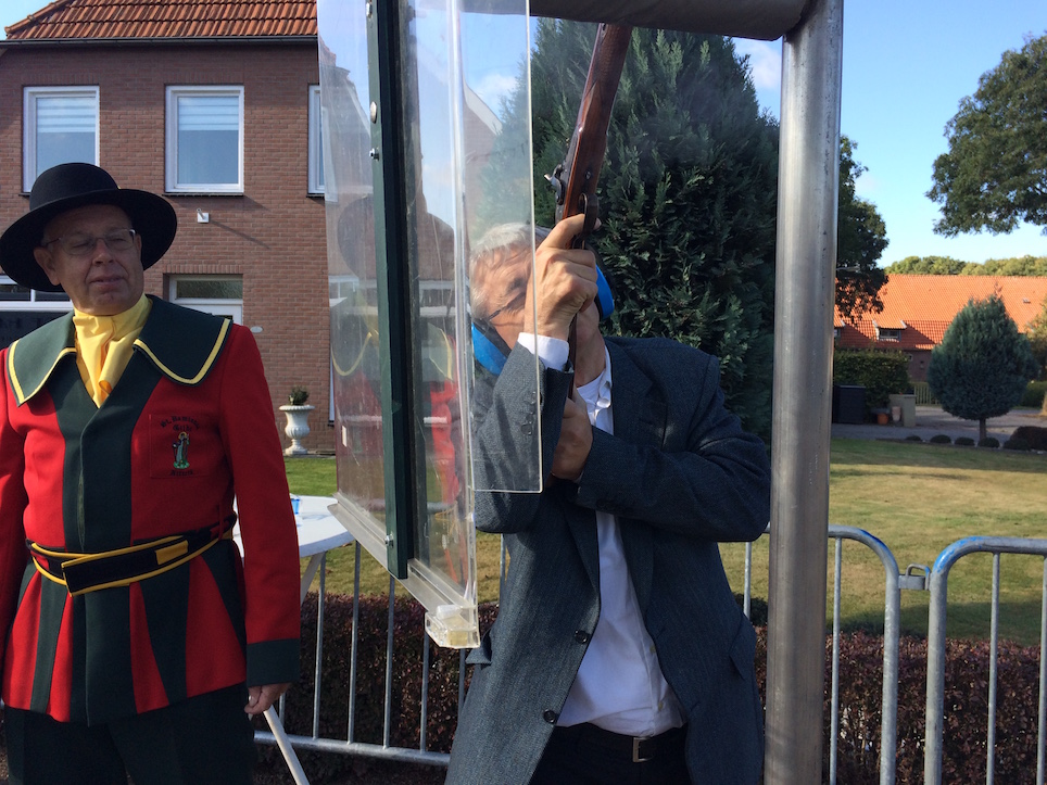 Maar liefst 45 leden, met als eis dat je inwoner van Niftik bent volgens de kadastrale grenzen van 1813 tot 1818 en lid bent van het St. Damianusgilde, probeerden op maandag 3 oktober de koningsvogel (de klos) naar beneden te schieten. Degene die het meest gelukkig was, was Werner Hendriks. Een dag lang 'koning van het gilde' want daarna wordt het weer overgenomen door de schutterskoning Poul en schutterskoningin Jannie die 3 jaar heersen. Het is niet gemakkelijk om het 17 meter hoge object waarvan je op 9 meter vandaan schiet naar beneden te halen. Dat duurt gemiddeld 150 schoten; deze keer had de winnaar er 143 schoten voor nodig! Wist u dat meer dan 90% van de Niftrikenaren lid is van het leuke St. Damianusgilde!
