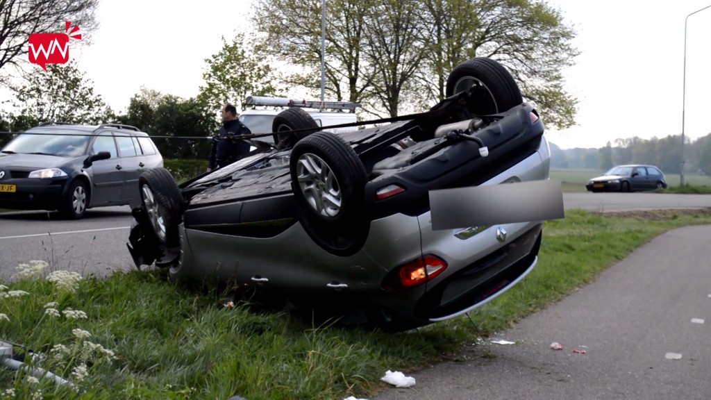 Auto over de kop in Bergharen