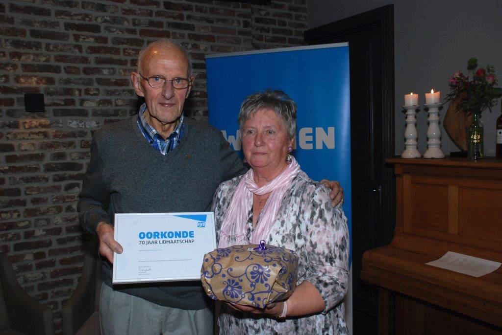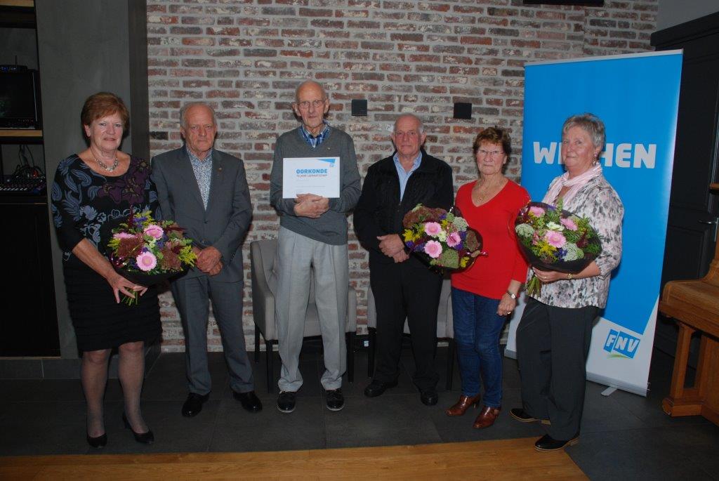 De onlangs overleden heer Jolie zou 25 jaar lid zijn geweest, hij werd postuum onderscheiden. Zijn zoon was hiervoor aanwezig. Speciale aandacht was er voor een 86 jarige die al 70 jaar lid was van de vakbond, hij kreeg nog een oorkonde, en een attentie. Aansluitend is het onder het genot van een hapje en een drankje nog een heel gezellige middag geworden.