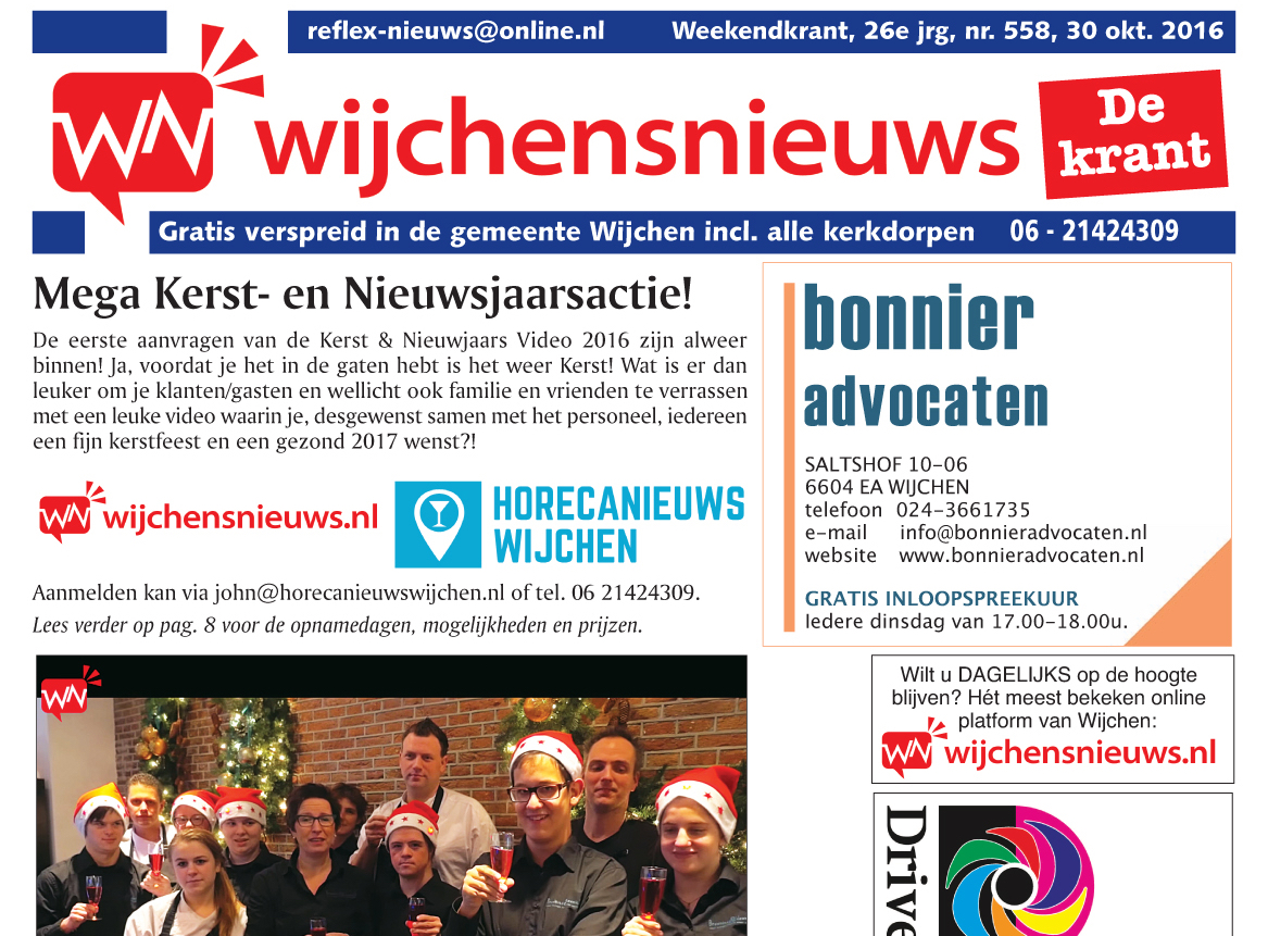 De gratis huis-aan-huiskrant 'Wijchensnieuws - de krant' zal vanaf vandaag weer in uw brievenbus verschijnen. En natuurlijk staat deze krant vol nieuwtjes ook op onze website: