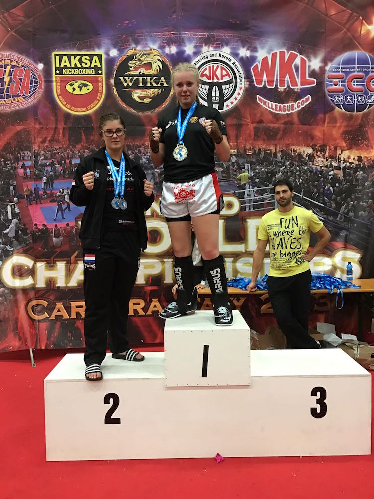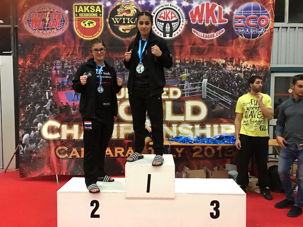 Het grote Wijchense talent Sanne Smits is er op zondag 30 oktober in Carrara, Italië niet in geslaagd om met goud naar huis te gaan. In haar eerste finalegevecht verloor Sanne van Felicia Knaap in de K1-klasse. Helaas kon ze in haar 2e finale in de Muaythai niet aantreden door een opgelopen blessure waardoor Aaliyah Renyaän het goud voor Nederland binnenhaalde zonder te vechten. Ook Renyaän is een Nederlandse, dus dat zit wel goed met deze 3 toppers! Sanne kijkt terug op een zeer geslaagd wereldkampioenschap en heeft in haar 1e WK-deelname zeker ook veel geleerd. We zijn trots op onze nieuwe wereldtopper! Maandag, morgenavond laat, is ze weer terug in Wijchen.