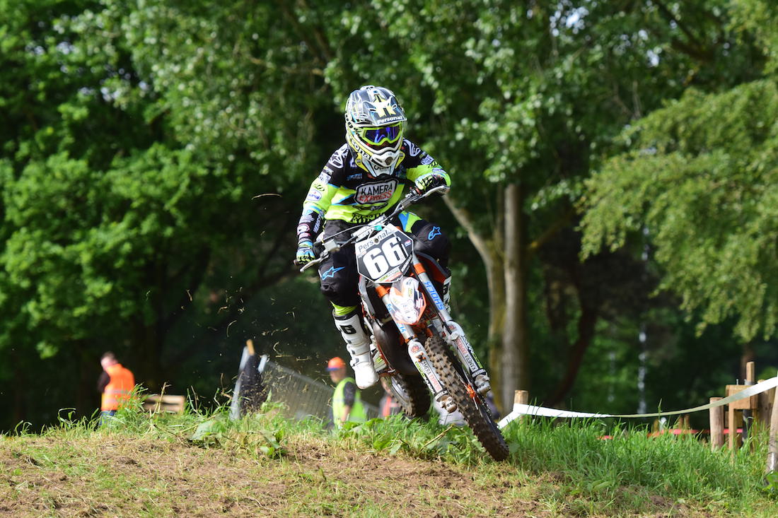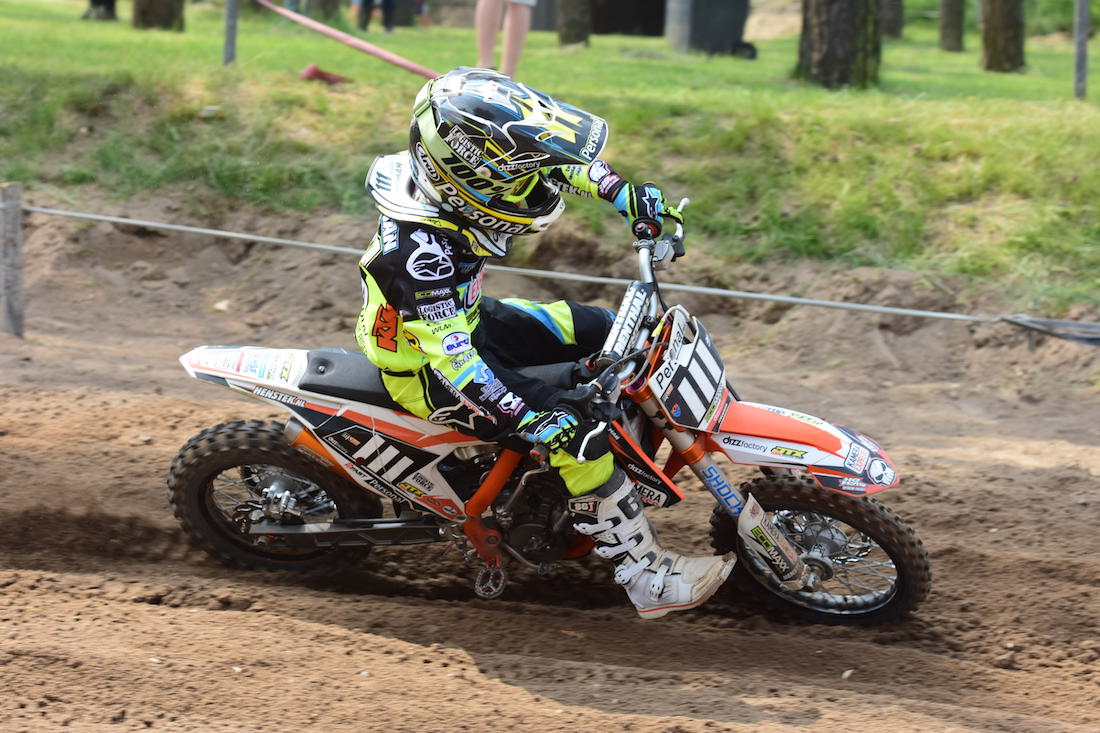 Afgelopen weekend was het raak voor de pas 10-jarige Damien Knuiman. Op het circuit van Dongen wist de crosser uit Wijchen Nederlands Kampioen 65cc kleine wielen te worden. Damien heeft door het seizoen heen een enorme groei gemaakt en liet vooral in het tweede deel van het seizoen zien wat hij in zijn mars heeft. Onlangs wist hij in Den Dungen al een wedstrijd om het Nederlands Kampioenschap 65cc kleine wielen bij de KNMV te winnen en in Dongen wist hij de Nederlandse titel 65cc kleine wielen van de MON binnen te halen.