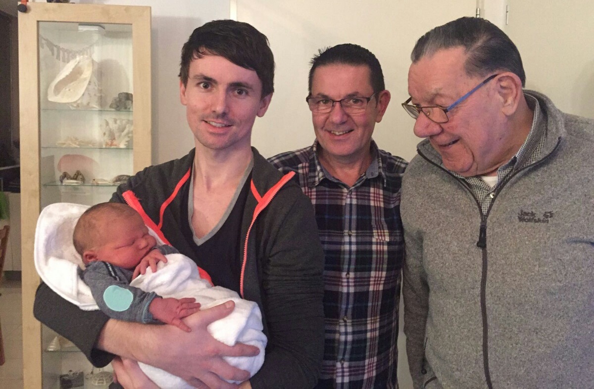 Natuurlijk is ook opa Pierre Derksen blij met zijn eerste klein kind. Uiteraard hebben we dan nog overgrootvader Jan Derksen uit Grave die helemaal in de wolken is met Quin, want nu zijn er 4 generaties Derksen!