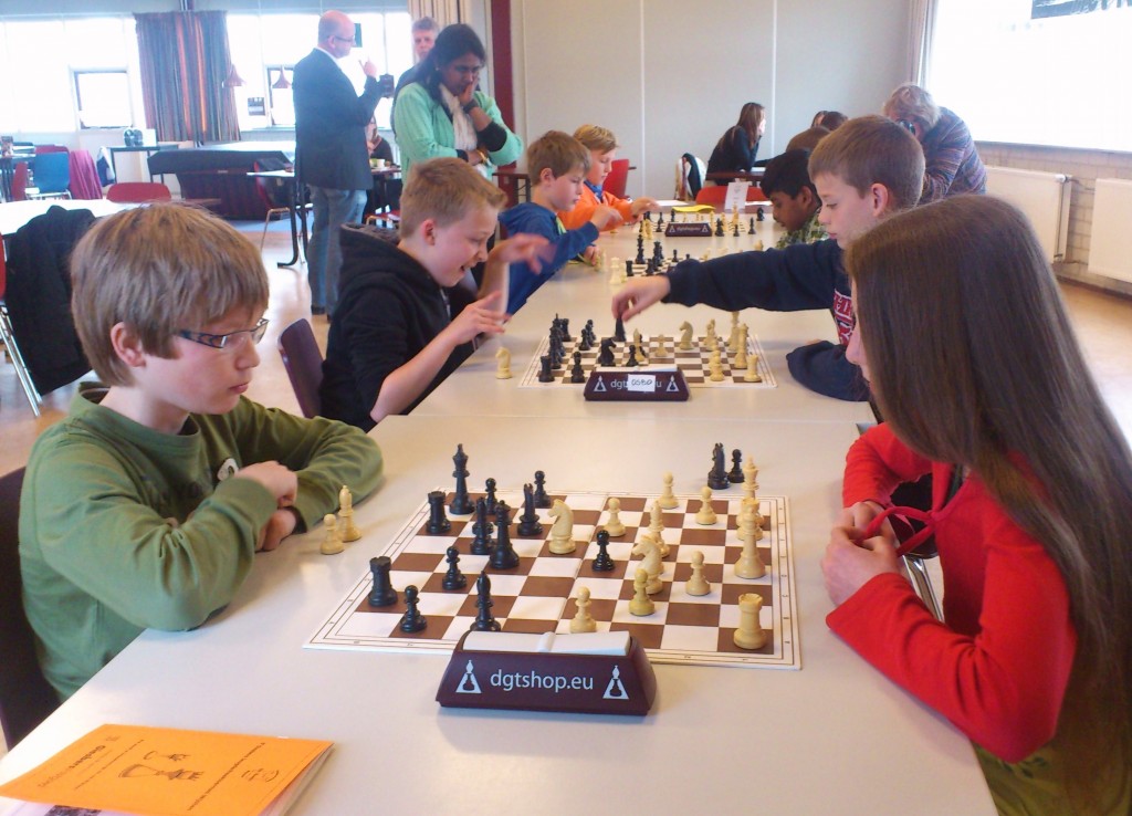Foto: Ritchy Duin: schakende kinderen tijdens het jeugdtoernooi in 2013.