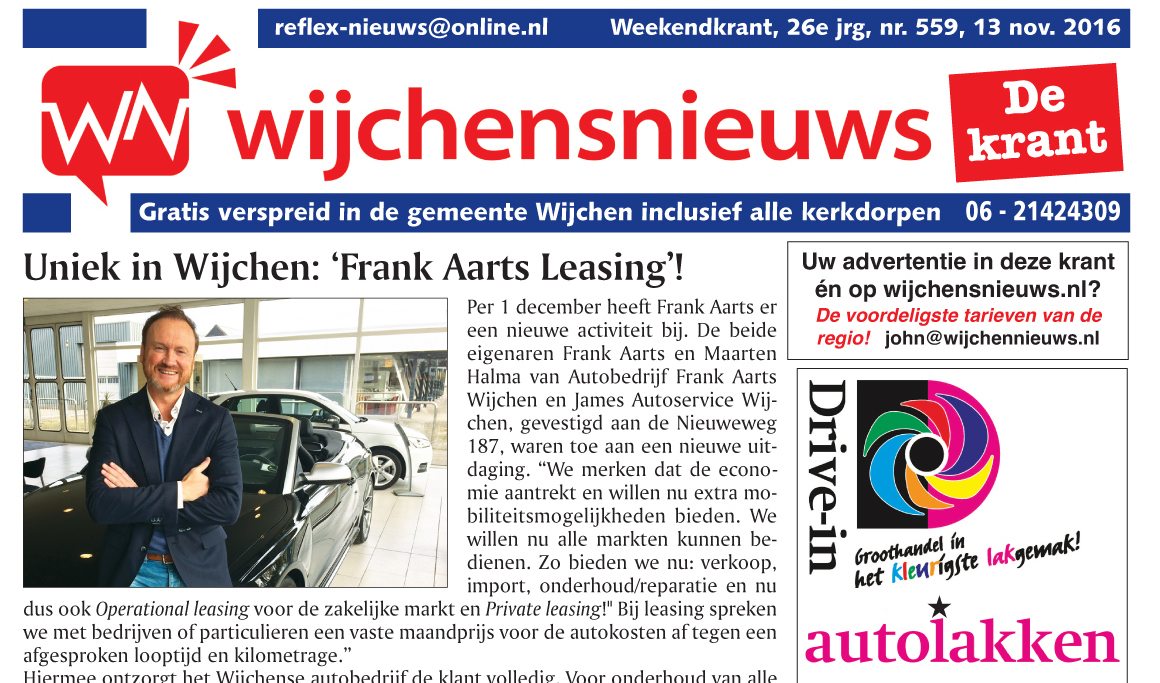 De gratis huis-aan-huiskrant 'Wijchensnieuws - de krant' zal vanaf vandaag weer in uw brievenbus verschijnen. En natuurlijk staat deze krant vol nieuwtjes ook op onze website: