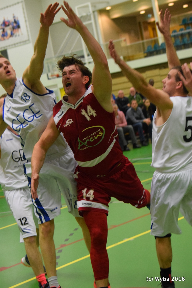 Wyba heeft als doel om de hele wedstrijd geconcentreerd te blijven spelen en ongeacht de tegenstander het maximale uit het eigen team te halen. In de beginfase is het krachtsverschil al duidelijk en het gebrek aan lengte bij Rowic geven Robert Bril en Corstiaan Kan inside veel kansen die benut worden. Als Thijs van Beek en Stan Bruijstens met snelle drives de score vergroten loopt Wyba uit naar een 31-17 voorsprong aan het einde van het eerste kwart. Ondanks de voorsprong blijft Wyba voor het merendeel goed geconcentreerd spelen.