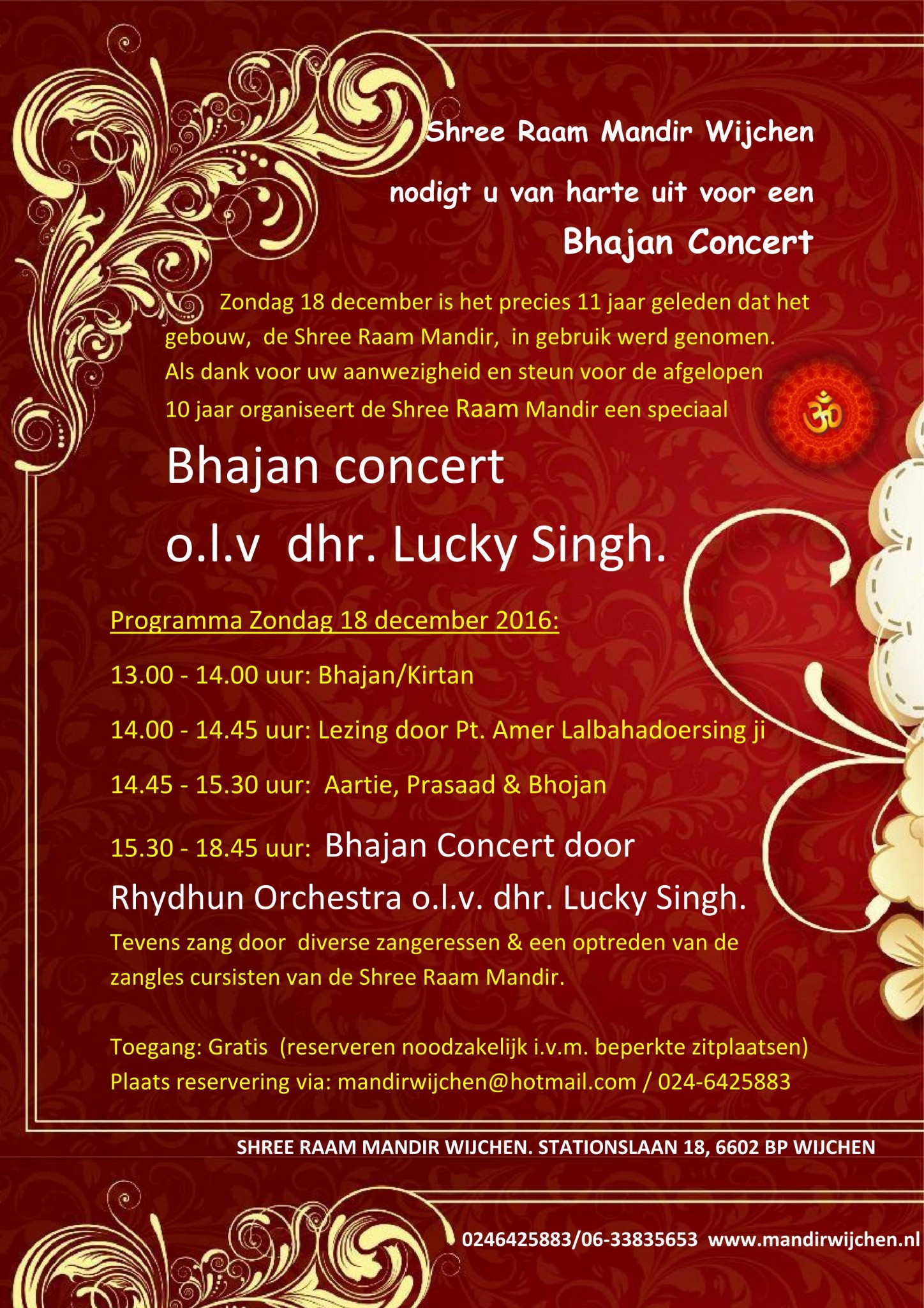 Bhajan Concert o.l.v. dhr. Lucky Singh op zondag 18 december 2016