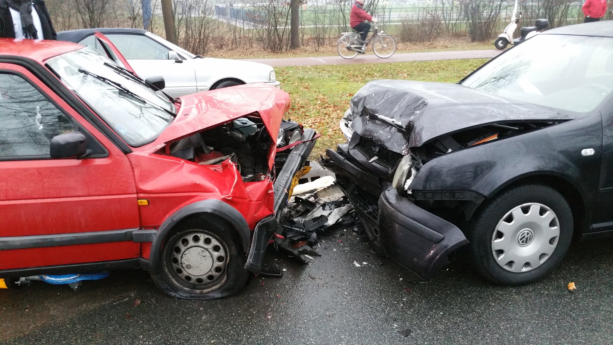 Wijkagent Henry van Galen laat via Twitter weten: "Randweg Noord in Wijchen. Bestuurder verliest bij aanrijding op T-kruising macht over stuur en botst frontaal op tegenligger. 2 gewonden."