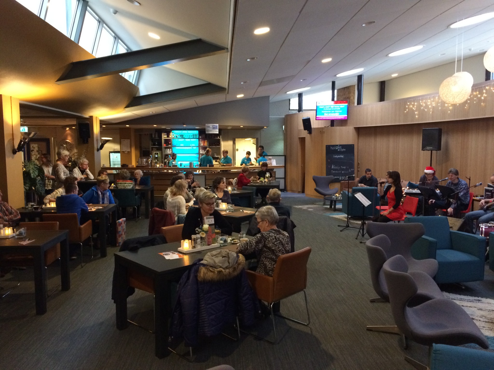 Op donderdag 15 december speelde, in een prachtige kerstsfeer tijdens de culturele lunch van de Huiskamer van Wijchen, Driestroomband Jukebox de leukste kerstliedjes!