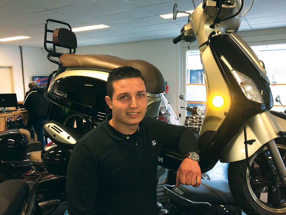 De 21-jarige Rens Willems zal u per 1 januari van harte welkom heten in zijn scooter- en motorenzaak RW Scooters & Motoren.