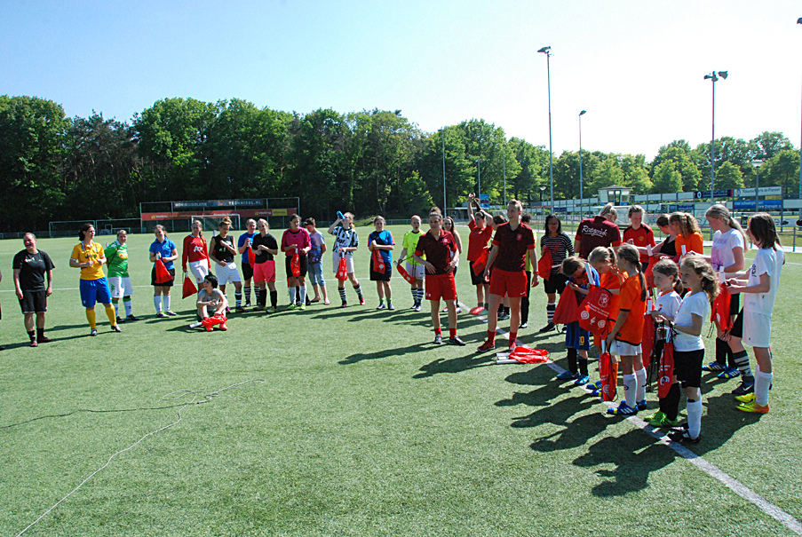 De vrouwen van FC Twente hadden, ondanks het behaalde kampioenschap van Nederland de avond ervoor, een prachtig programma samengesteld.