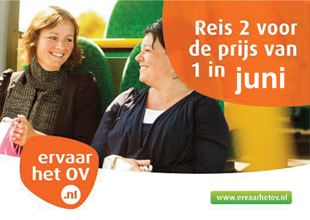 In juni kan iedereen in Gelderland, Overijssel en Flevoland voordelig kennismaken met het openbaar vervoer. In deze periode kunnen twee personen met de bus of regionale trein reizen voor de prijs van één. Het werkt heel eenvoudig. Eén persoon reist met een geldig vervoerbewijs. De tweede persoon kan het speciale e-ticket aanvragen op