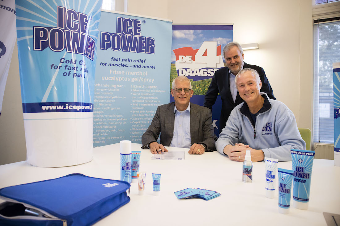 Hans-Peter Brands, directeur Medzorg Nederland, de distributeur van Ice Power: “Het is fantastisch dat wij nu de gelegenheid krijgen om de werking van ons product Ice Power de komende jaren extra onder de aandacht te brengen van de wandelsporttoppers die de Vierdaagse Nijmegen lopen. Wij ontmoeten en adviseren hen straks graag.”