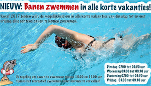 Nieuw: in de Krokus/carnavalsvakantie zijn er meer banenzwemtijden, elke ochtend van dinsdag t/m vrijdag bij