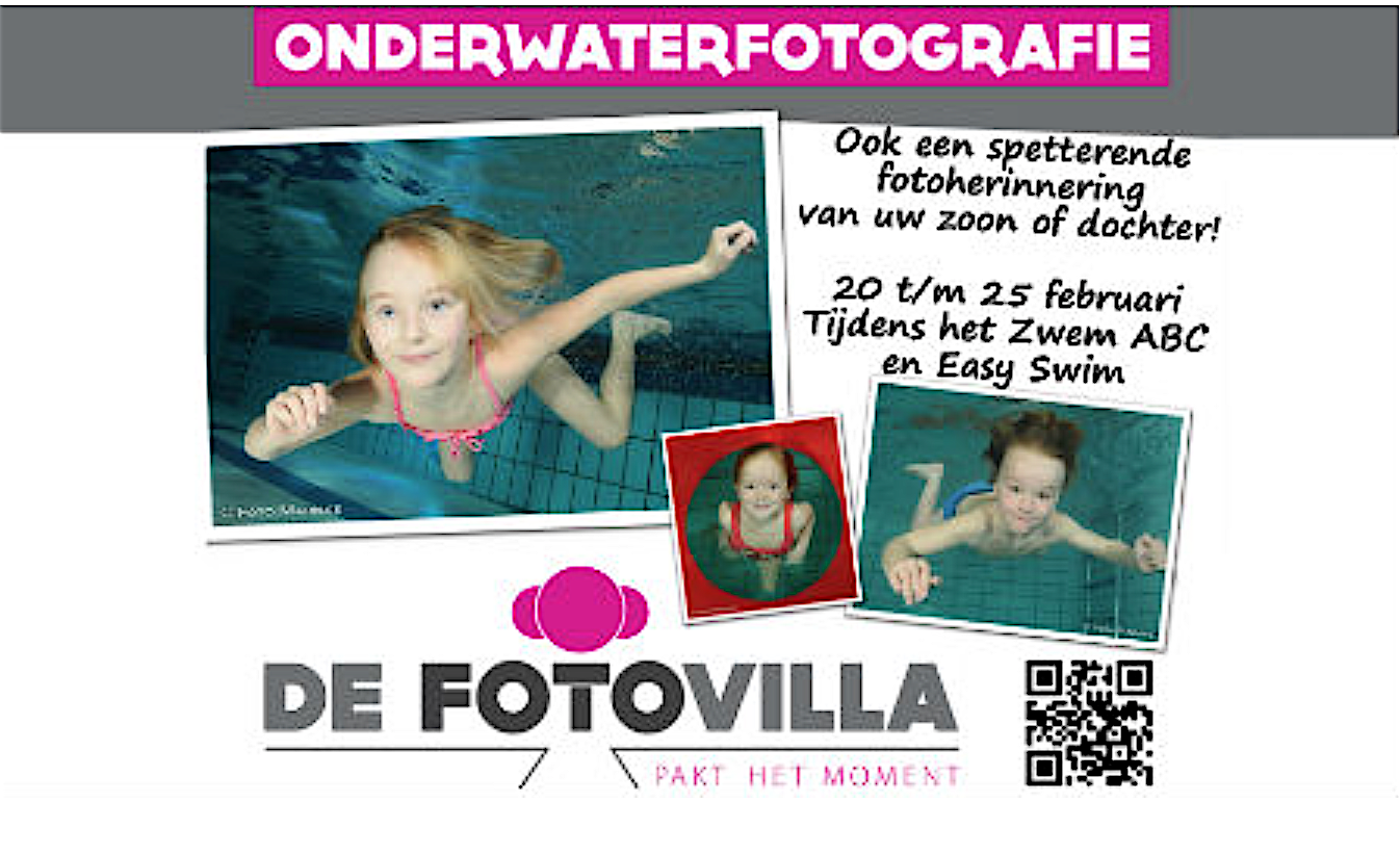 Zwembad De Meerval een geweldige activiteit. Door een professionele onderwaterfotograaf zal van elk kind foto's gemaakt worden. Deze worden afgedrukt op het formaat 13 x 18 cm en kunt u één week later op dezelfde dag als de fotografiedag bij het zwembad aan de Meerdreef komen bekijken. Voorbeelden van fotowerk kunt u bekijken op