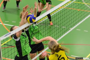 e set begon nog een beetje onwennig, maar de uiteindelijke setwinst van 25-9 zegt eigenlijk genoeg. Opvallend detail in deze set was de 8 puntenreeks van Stefanie Beekers bij de service. Ook de 2 ‘Vissertjes’ van spelverdeelster Hennie Visser mochten er zijn en voor de rest waren het de aanvalsters die de ballen er achter elkaar in ‘rausten’.