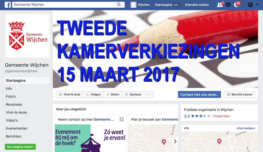 Volg de gemeente Wijchen via Facebook. Via Facebook brengt de gemeente snel informatie over aan inwoners en houdt u op de hoogte over evenementen, wegwerkzaamheden en projecten. Ga naar de Facebookpagina via