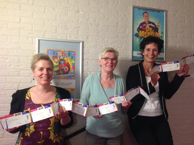 Dankzij de gulle sponsoren Rabobank Rijk van Nijmegen, JBS Advocaten en Novum Network heeft theater 't Mozaïek ruim 60 theaterkaarten voor de familievoorstellingen van Bobo en Jochem van Gelder & Ron Bons mogen overhandigen aan de Voedselbank Wijchen. Diverse sponsoren krijgen als tegenprestatie voor hun bijdrage aan het theater enkele kaarten ter beschikking, maar zij maken daar niet altijd gebruik van. Op deze manier zetten zij zich dubbel maatschappelijk verantwoord in, ze steunen het theater én gezinnen die helaas niet de mogelijkheid hebben om dit soort culturele uitstapjes te maken. Voorzitster Wietske Bosma was dan ook erg blij om deze rits kaarten te krijgen uit handen van sponsormanager Felice Fortmann en theatercoördinator Nancy van Nuland.