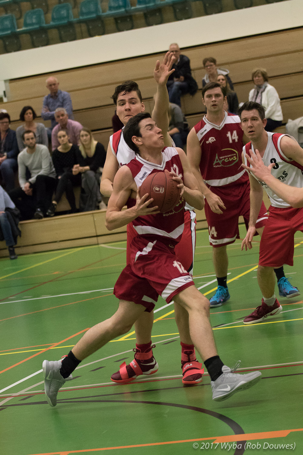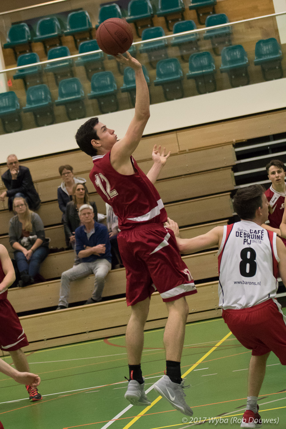In het tweede kwart nemen Stan Bruijstens en Thijs van Beek het team op sleeptouw en loopt Wyba uit naar een 40-24 voorsprong maar vergeet het team bij missers van Barons de verdedigende rebound te pakken en kan Barons door hard werken terugkomen tot 40-30. Wyba blijft als team hard werken en Corstiaan Kan neemt het stokje aanvallend dan weer over en bepaald de ruststand op 48-32. Als Barons na de rust snel starten met een normale score en een driepunter is het verschil minder dan 10 maar Corstiaan Kan en Vincent Bremer schieten ook met scherp en door wat verdedigende stops te behalen kan Wyba weer snel uitlopen naar 61-40. Barons probeert aanvallend nog wat terug te doen maar heeft verdedigend geen antwoord op Wyba die op stoom geraken en met mooi teamplay wordt steeds de vrije man gevonden en vliegen de scores om de oren waardoor het laatste kwart begonnen wordt met een 82-48 voorsprong.