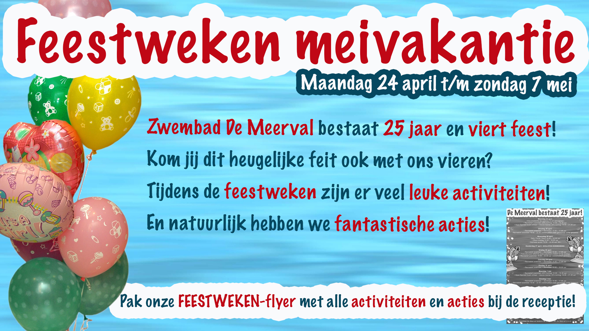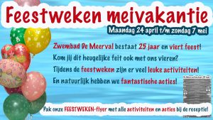 Kortom. twee weken samen feesten en genieten in de Meerval, voor tal van activiteiten hanteert het zwembad deze weken een speciaal tarief. Houd de