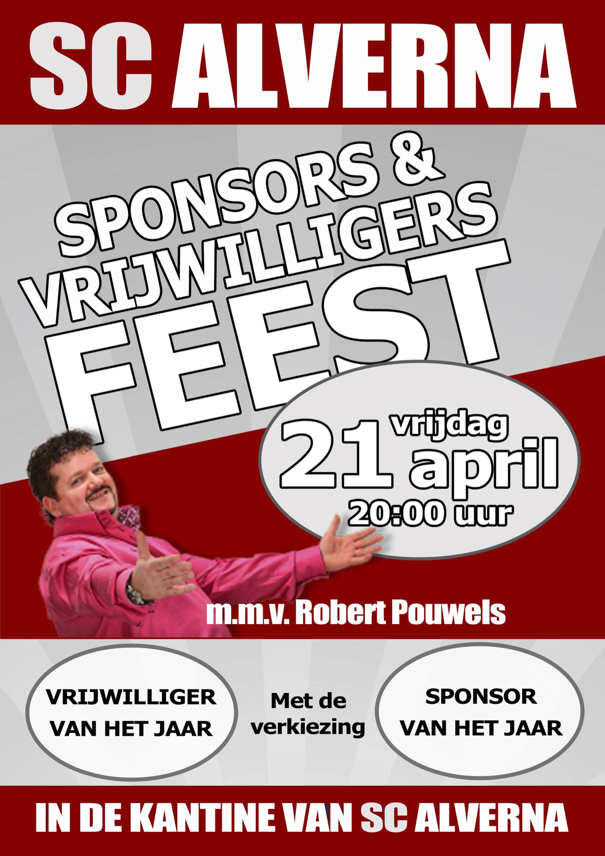 Zanger/DJ Robert Pouwels zorgt voor de muzikale omlijsting en de spelers van Alverna 1 en 2 staan achter de bar om de gasten te bedienen.