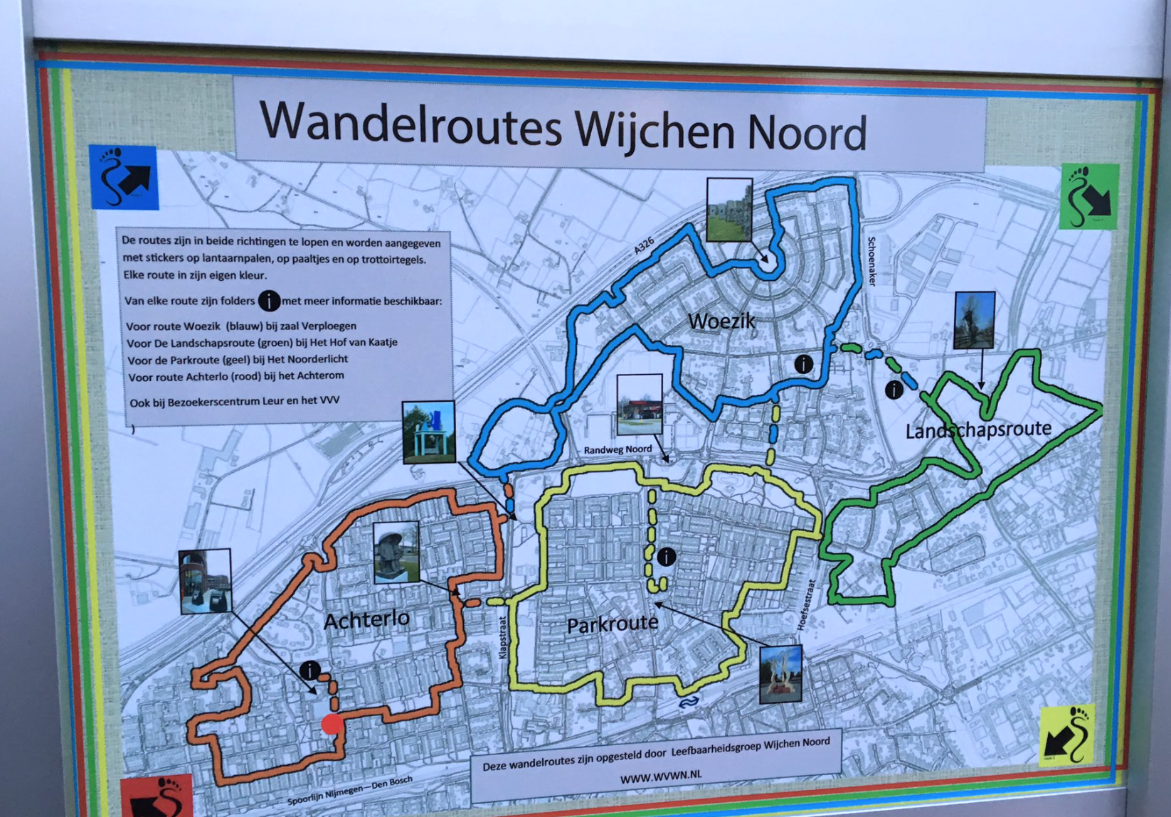 Wethouder Paul Loermans twitterde: "De wandelroutes in #Wijchen Noord zijn rolstoelvriendelijk gemaakt." Hier ziet u de kaart van de wandelroutes Woezik, Landschapsroute, Parkroute en Achterlo: