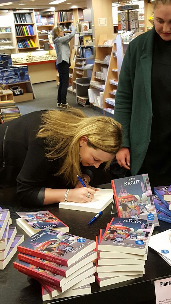 Onlangs is in boekhandel Plantage De Kleijn aan de Burchtstraat het nieuwe boek van Solange Litjes gepresenteerd. Daarna zette Solange zich aan het signeren.