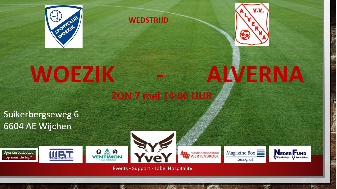 Maar zondag eerst naar Woezik aan de Suikerbergseweg 6 dat al een periodetitel op zak heeft, terwijl ADO zondag kampioen werd. De thuiswedstrijd tegen Woezik werd onverdiend met 1-2 verloren en Woezik mist zondag enkele spelbepalende spelers, terwijl bij Alverna alleen Rick van Ginkel nog ontbreekt. Volgende week zondag komt kampioen ADO naar het Bospad en ook dan zijn er mogelijkheden want in Heemskerk werd verdiend een 0-0 behaald.