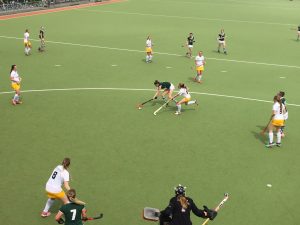 In de eerste helft waren het Marloes Smarius – Anne Jansen – Robin Lepoutre – Megan Heesbeen en Sandra Rutten die tot score kwamen. In de tweede helft werd er nog eens vier keer gescoord en dat bracht de eindstand van 9-0 op het scorebord. De doelpunten werden gemaakt door Sandra Rutten – Inge Ariens – Sanne van As en Anne Jansen.