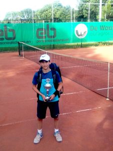 Afgelopen week waren de Gelderse Jeugd Districtskampioenschappen. Deze werden dit jaar in Tiel gehouden, op de gravelvelden van TC Groenendaal. Wijchenaar Simon de Swart deed hier ook aan mee. Simon, die 5 keer in de week traint, waarvan 3 keer in Wolfheze bij tennisschool House of Tennis en 2 keer bij LTV Vormer, was gebrand op een goed resultaat. Wat heet: hij werd eerste in zijn categorie JE 15-16 jaar. Een geweldig resultaat, proficiat, Simon!