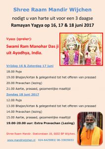 Driedaagse Ramayan Yagya op 16, 17 & 18 junibij Shree Raam Mandir
