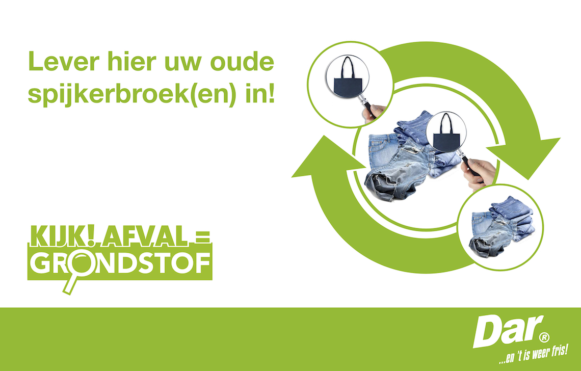 Op deze manier is spijkerstof steeds herbruikbaar. Dit draagt ook bij aan de doelstelling van de Vierdaagsefeesten en Dar: een volledig circulair evenement, dát is waar Dar en Vierdaagsefeesten aan werken de komende jaren. Steeds opnieuw kan van spijkerstof weer nieuwe spijkerstof gemaakt worden. Het gerecyclede spijkerstof wordt samen met een klein deel biologisch katoen, tot nieuwe stof geweven. Dit is uniek in de textielverwerking.