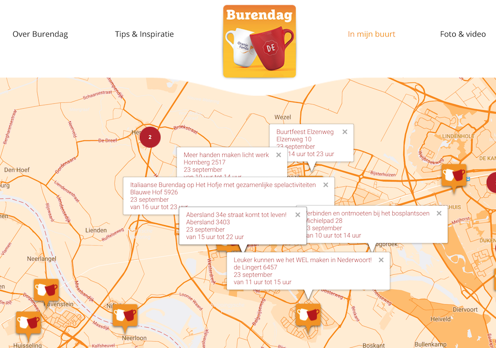 www.burendag.nl staat onder het kopje ‘In mijn buurt’ een overzicht van alle buurten die zich tot nu toe hebben ingeschreven.