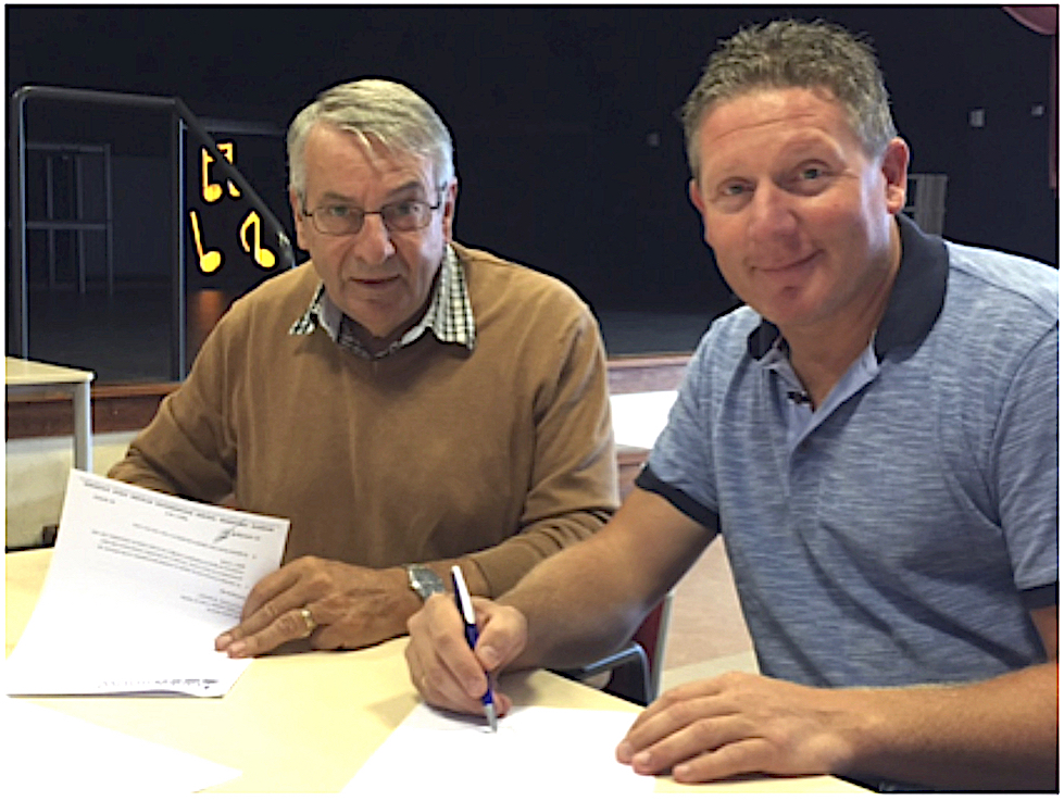 Afgelopen week is de aannemingsovereenkomst voor de aanbouw van de keuken ondertekend door de voorzitter van de Oase John Peters en Frank Lemmers.