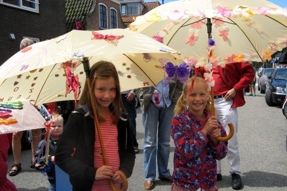 Een parade van honderden kinderen en volwassenen met versierde paraplu’s door het centrum van Wijchen trekken. Deze zogenaamde ´umbrellaparade´ komt oorspronkelijk uit New Orleans waar de paradebands gevolgd worden door een kleurige stoet fans