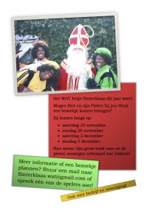 Sint neemt zijn grote boek mee en de Pieten verzorgen uiteraard wat lekkers! Ook voor bedrijven en verenigingen.