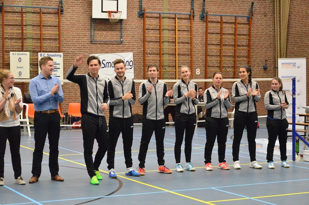 Milou Lugters en Roy Reijbroek speelde een goede partij en zorgde dat de 4-3 op het scorebord kwam. Wat een verassing was dit! 4-3 voor BC Smashing tegen BC DKC, in Wijchen konden ze dit amper geloven. Brandon Bessem en Ella Peters hadden ondertussen ook de eerste set gewonnen tegen Dennis van Daalen de Jel en Daisy Bommeleijn. Nu ging het publiek nog één maal vol achter de Wijchenaren staan en dat bracht ze tot een super overwinning.