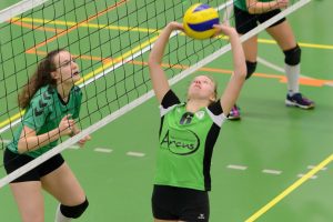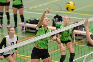 De vierde set moest dus de extra bonuspunt opleveren. En dat zou dus extra motivatie moeten zijn en er weer vol tegen aan gaan. Toch liep Alterno geleidelijk aan uit naar een 16-12 voorsprong. Dat was het moment weer om met wat wissels verandering in deze stand te brengen. Al snel werd er gelijk gemaakt 16-16 en ging men, opgezweept door het wederom in grote getale opgekomen publiek, door met scoren. In deze fase van de wedstrijd stond er weer jonkies in het veld die het prima deden en lieten veerkracht zien . Lieke Wouters beloonde zichzelf en het team met een fraai klap in het midden bij de stand 24-18. Esmee beeindigde met haar bal de wedstrijd: 25-18.