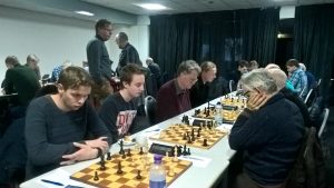 Invaller Siebe Rossen kwam materiaal voor tegen Van Popta en leek de partij te beslissen. In de tijdnoodfase leek het toch mis te gaan, maar Rossen kwam in het toreneindspel met een pion minder verrassend genoeg sterk terug. De fries speelde onnauwkeurig, Rossen greep zijn kans en wist met een pion voorsprong de partij alsnog te winnen. Een puike prestatie van de dit seizoen weer met schaken begonnen invaller.