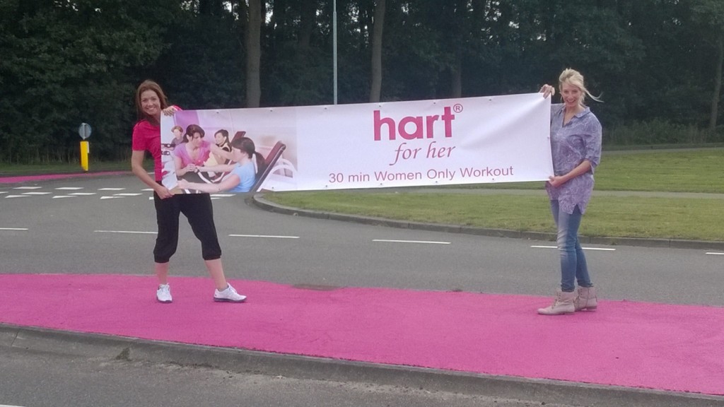 Ook Bernadette Pieterse was aangenaam verrast door al dat roze onderweg. Roze is toch een kleur waar veel vrouwen zich tot aangetrokken voelen.Vandaar dat het de huiskleur is van haar nieuw te openen sportschool voor vrouwen in Wijchen. ‘We zijn nog niet open, maar druk aan het klussen en ja, ook veel met de roze verfkwast. Daarom dacht ik zelf ook eerst dat iemand van de landelijke organisatie van Hart for her misschien een stunt had uitgehaald’. Maar nee, alle verf staat nog keurig in het pand op de Herenstraat 36. Het voormalige pand van de Filmclub, kleurt van binnen al een tikkeltje roze. Rond half oktober zal hier Hart for her open gaan. Het is een sportschool voor vrouwen, waar alle dames straks welkom zijn voor een funwork-out van 30 minuten, al dan niet in het roze’, grapt Bernadette.