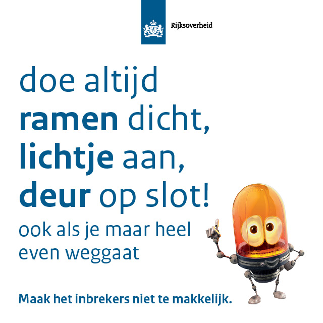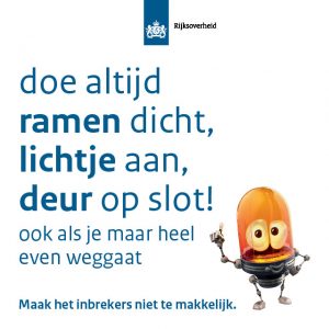 - Doe altijd de deuren op slot en sluit de ramen, ook als je maar even weggaat.