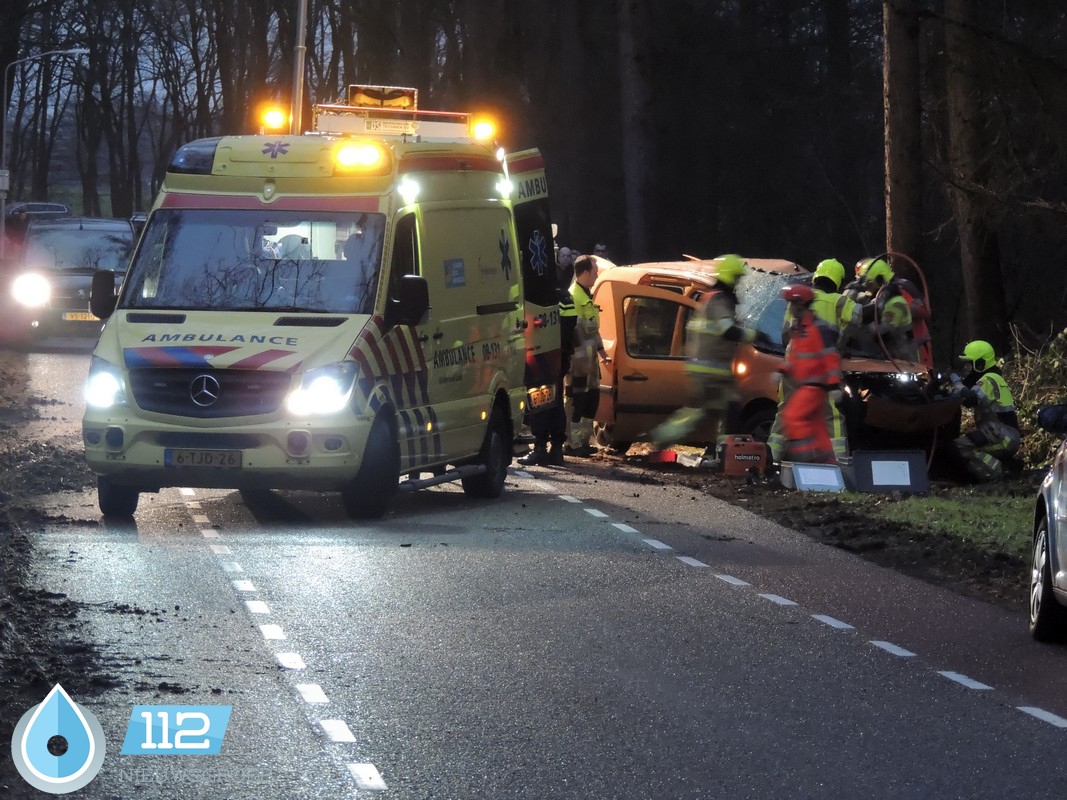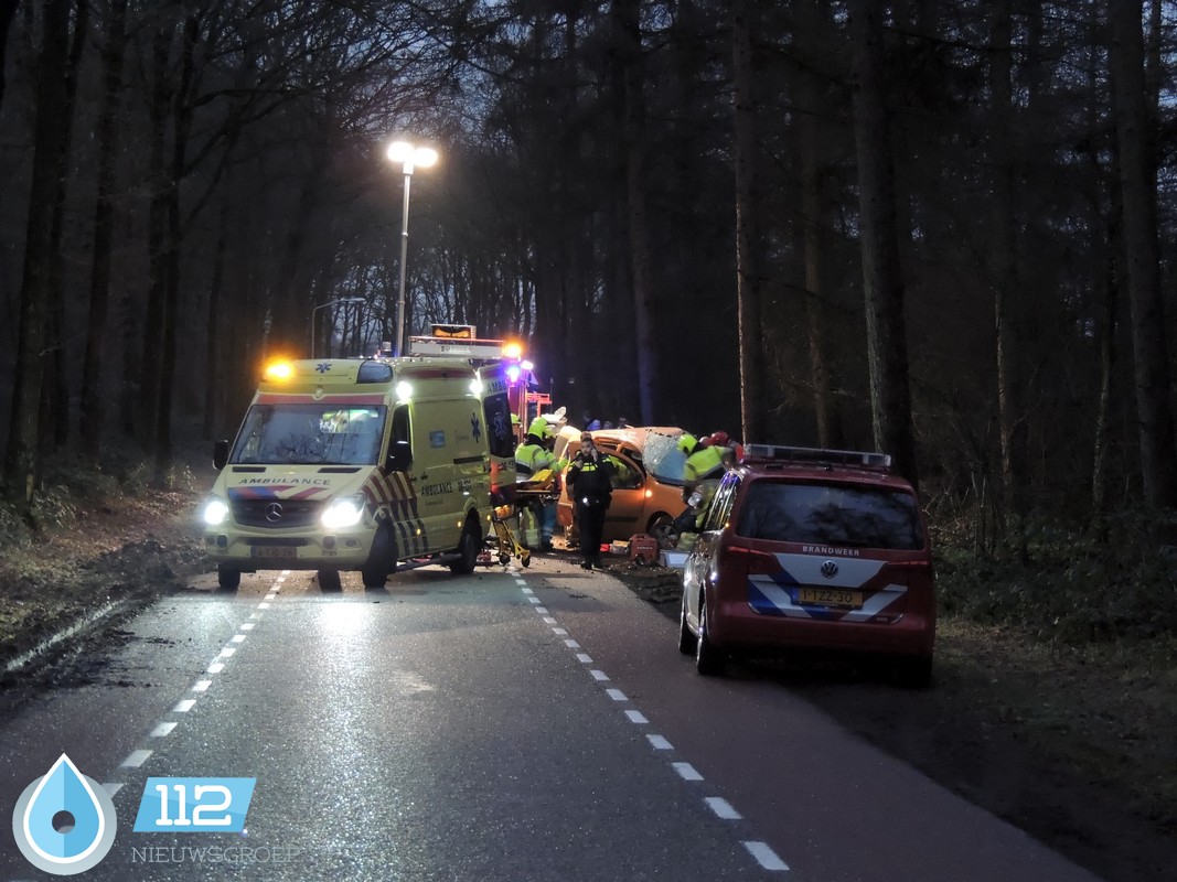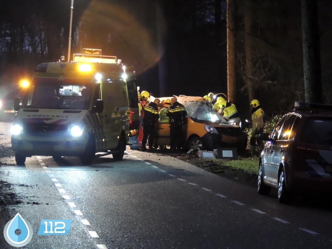 De bestuurster haalde in en raakte in een slip, waarna ze tegen de boom botste. De brandweer heeft de vrouw uit het voertuig moeten halen. De vrouw raakte ernstig gewond en is met spoed per ambulance overgebracht naar het ziekenhuis. De politie doet onderzoek naar het ongeval.